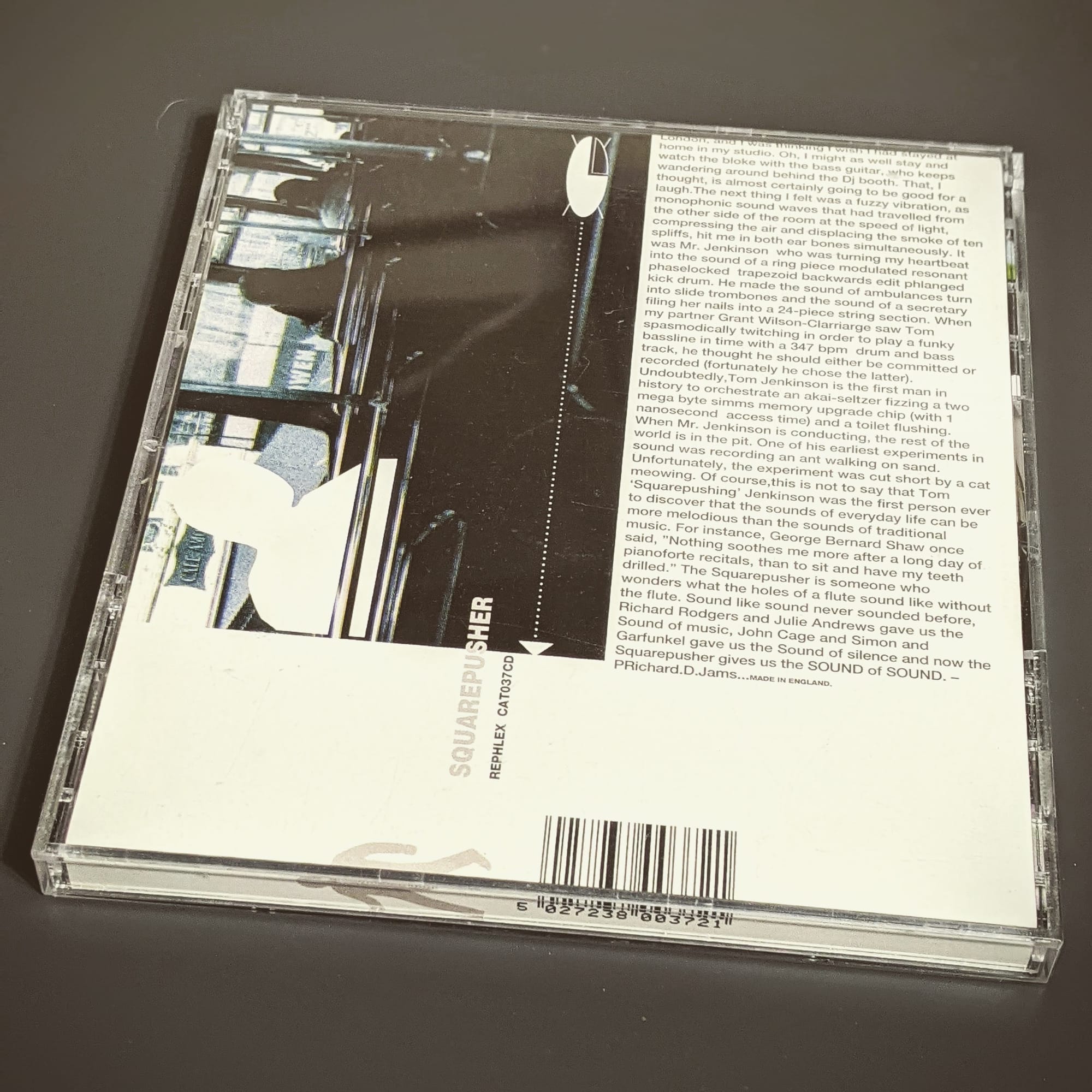 Feed Me Weird Things, the debut long-player from Squarepusher, née Tom Jenkinson, recently celebrated its quarter century anniversary, marked by a remastered reissue on Warp Records. Pictured here is the original 1996 edition, courtesy of Richard D. James's Rephlex label. In addition to playing Squarepusher's patron for this album, the Aphex man himself provided liner notes as manically dense and whimsical as the contents therewithin.