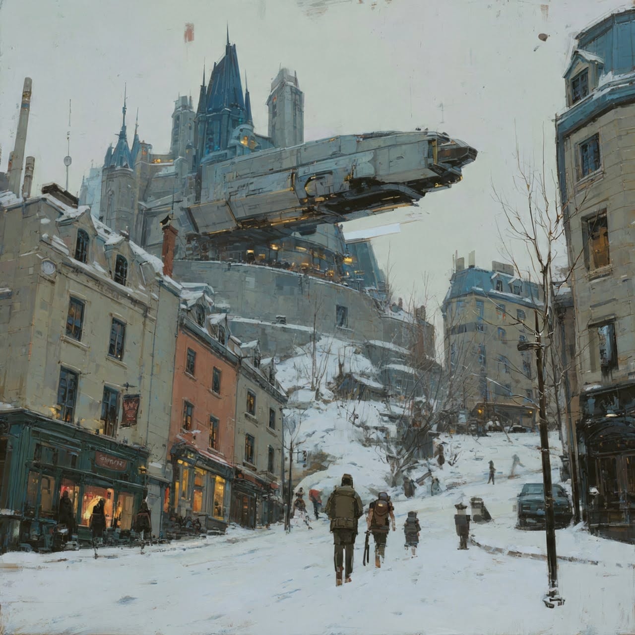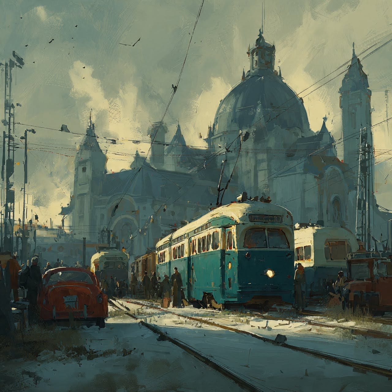 End with one small, quiet detail that suggests the pattern continues. A sound from the wrong year. A dog boarding an empty tram at the terminal. A notification on someone's phone — for a line that doesn't exist.